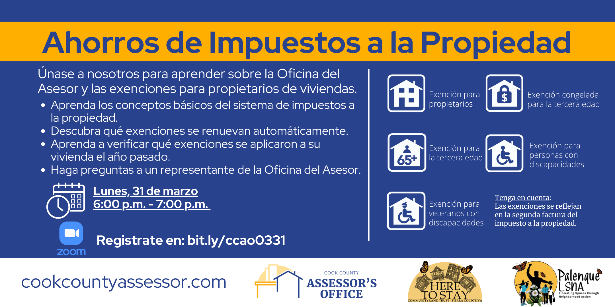 Únase a nosotros para aprender sobre la Oficina del Asesor y las exenciones para propietarios de viviendas.