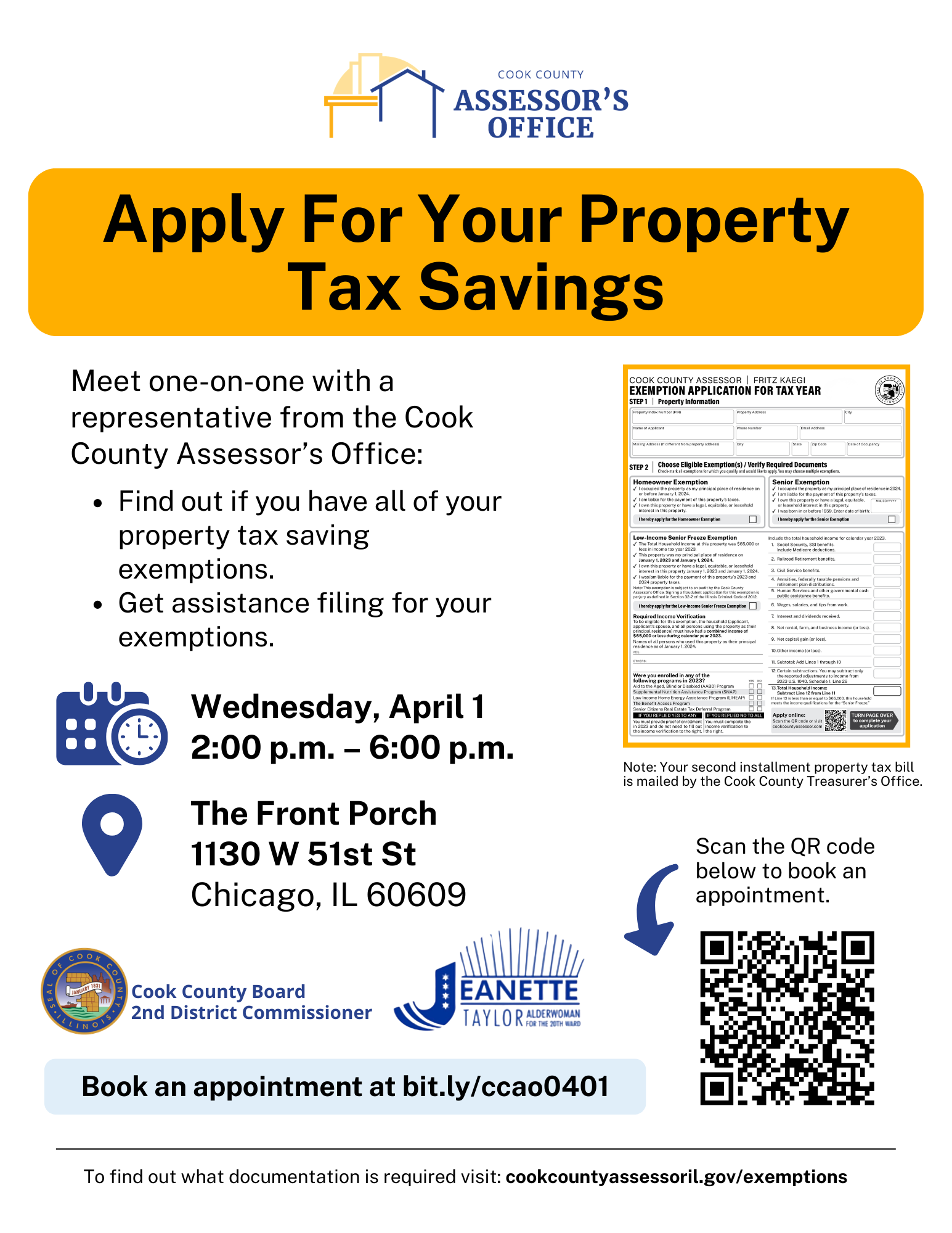 Meet one-on-one with a representative from the Cook County Assessor’s Office: