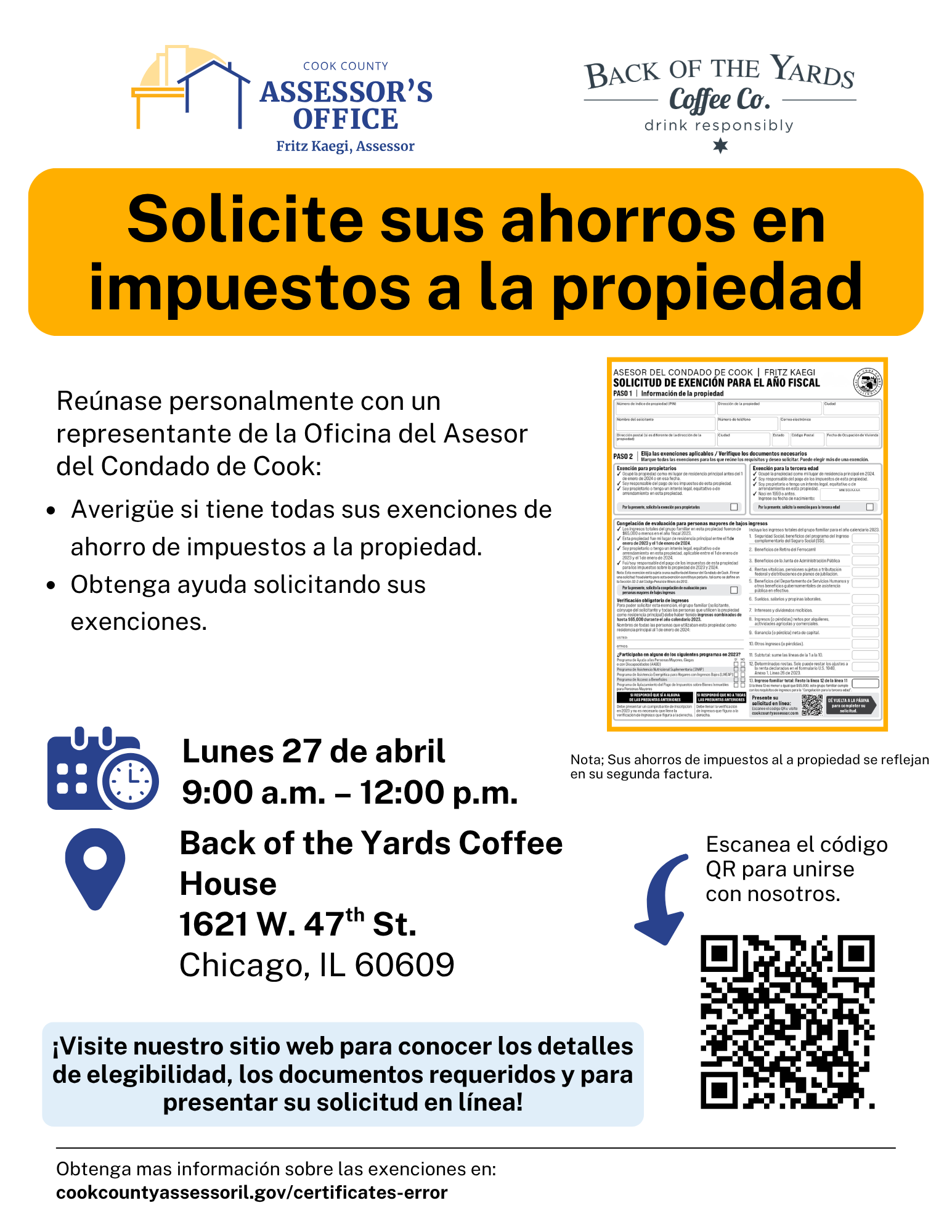 Apply for Your Property Tax Savings | Back of the Yards Coffee