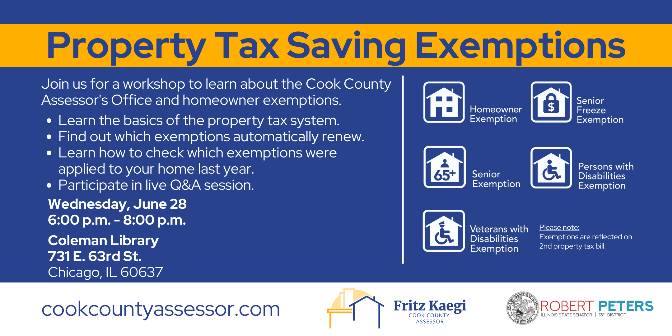 Join us for a workshop to learn about the Cook County Assessor's Office and homeowner exemptions.