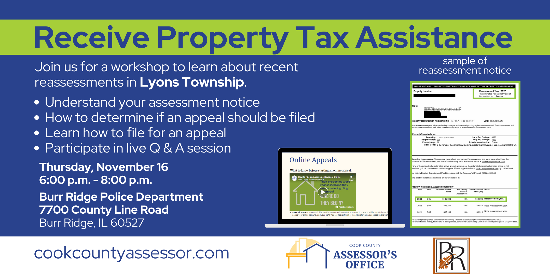 Join us for a workshop to learn about recent reassessments in Lyons Township.
