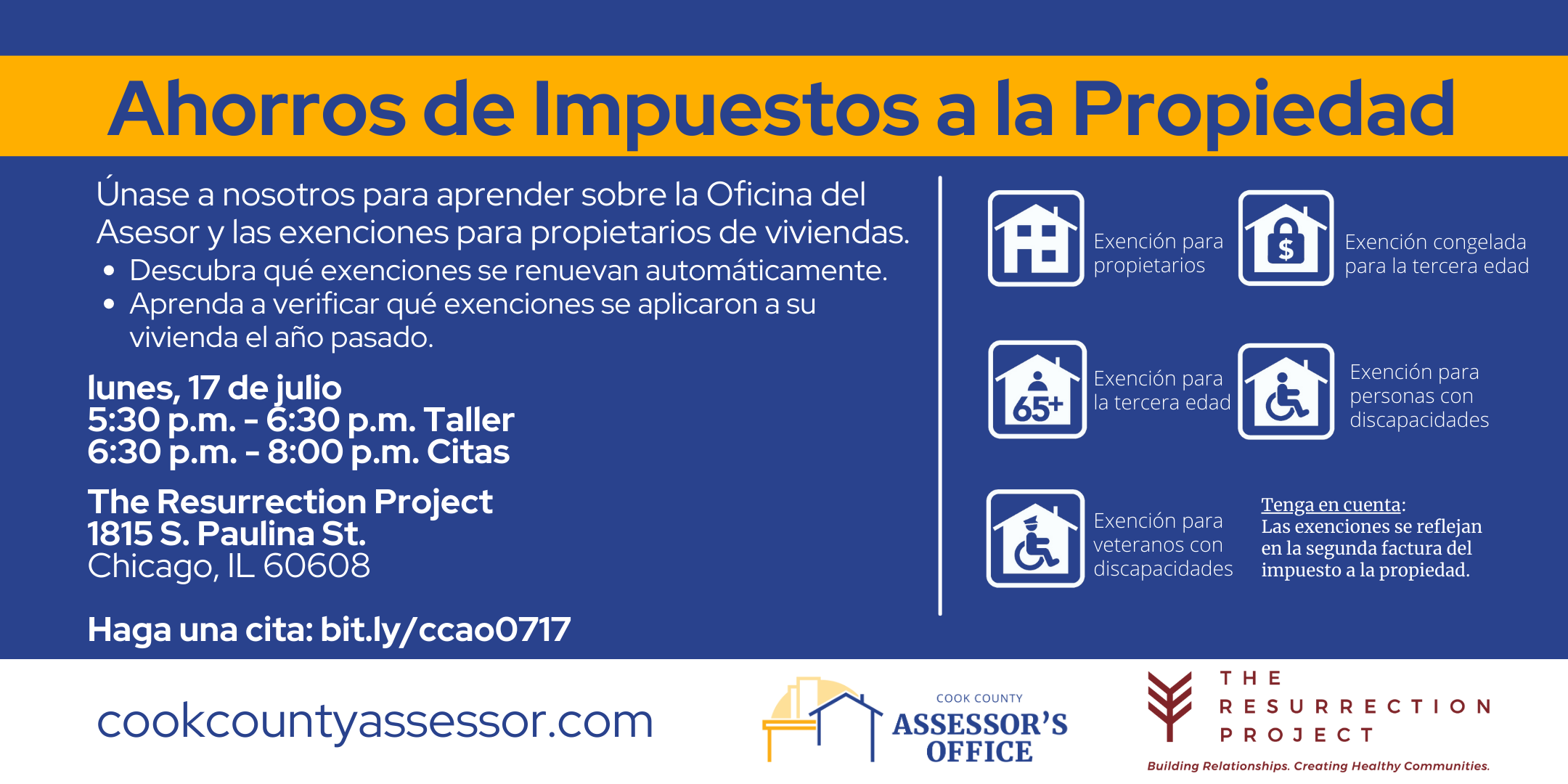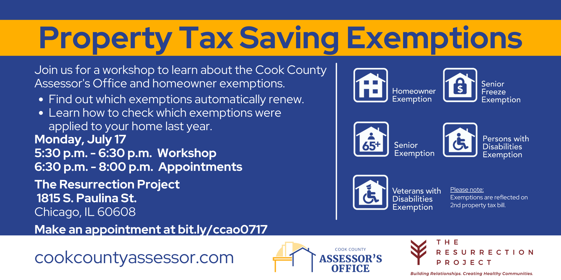 Join us for a workshop to learn about the Cook County Assessor's Office and homeowner exemptions.