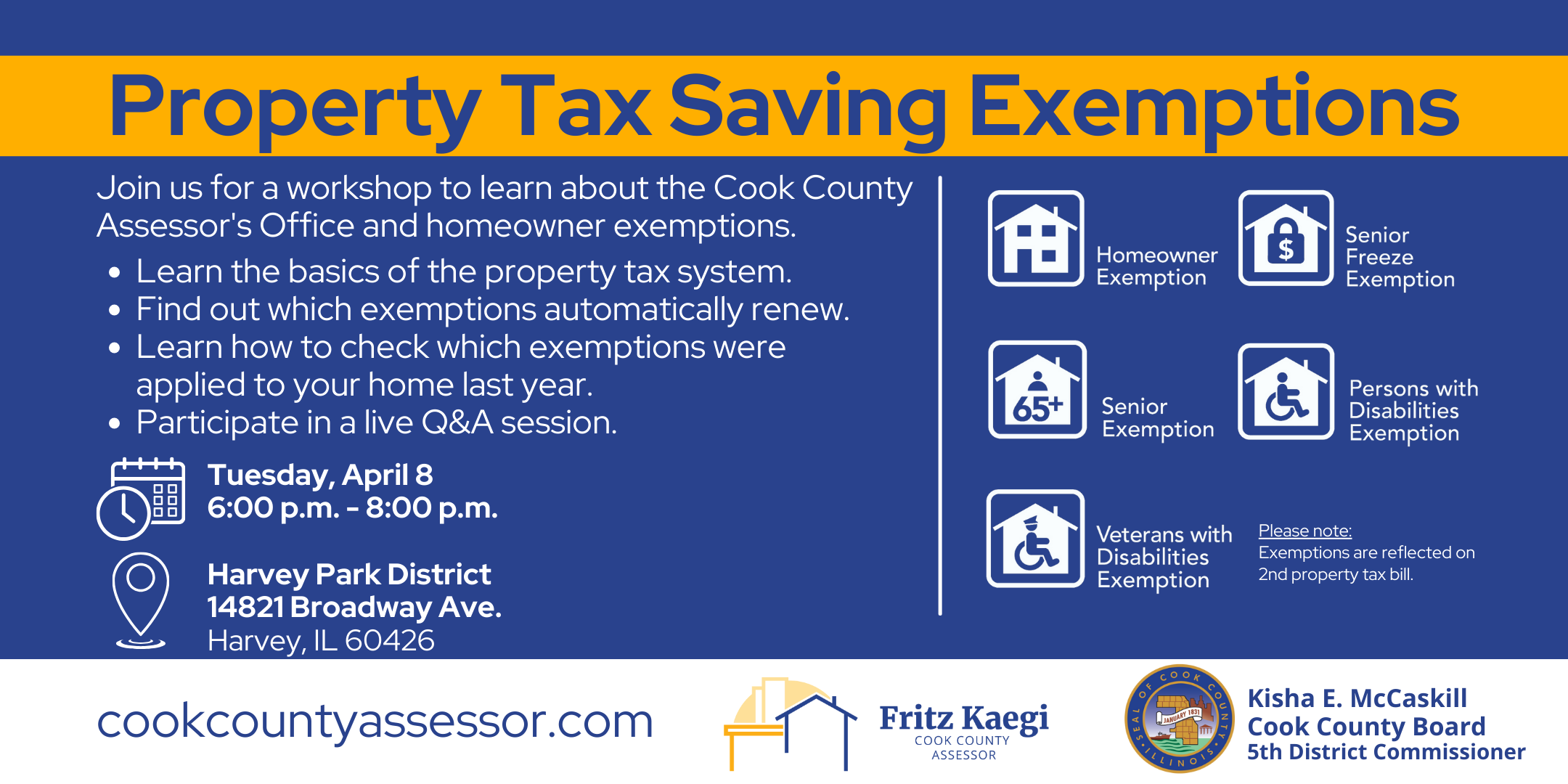 Join us for a workshop to learn about the Cook County Assessor's Office and homeowner exemptions.
