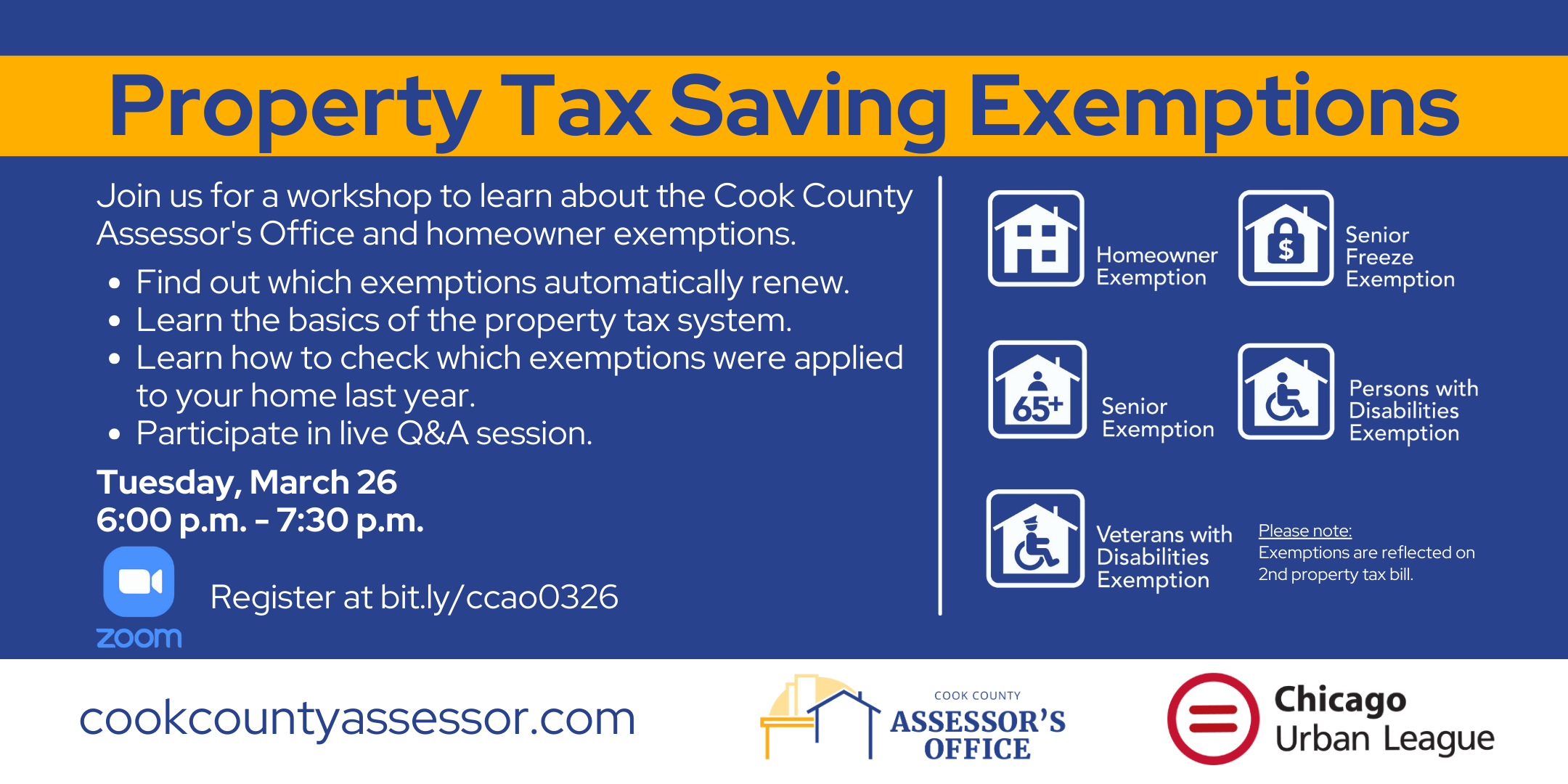 Join us for a workshop to learn about the Cook County Assessor's Office and homeowner exemptions.
