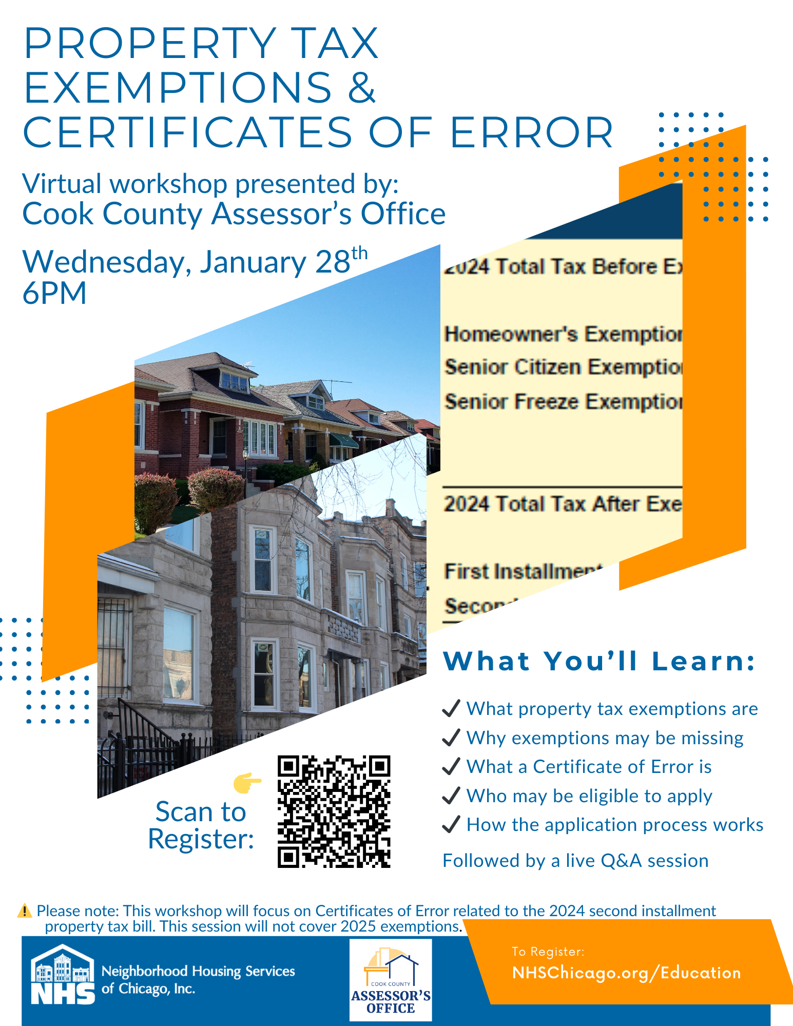 Join us for a workshop to learn about the Cook County Assessor's Office and homeowner exemptions.