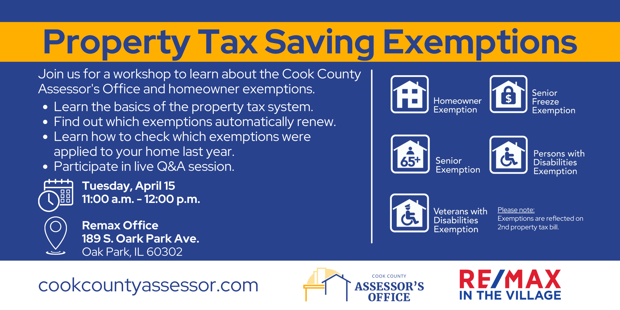 Join us for a workshop to learn about the Cook County Assessor's Office and homeowner exemptions.