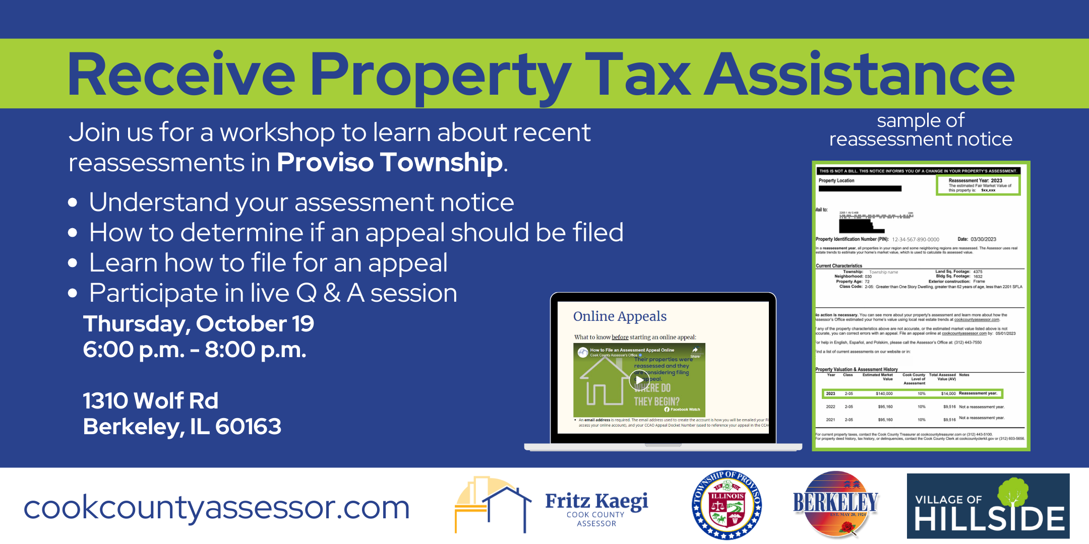 Join us for a workshop to lean about recent reassessments in Proviso Township.
