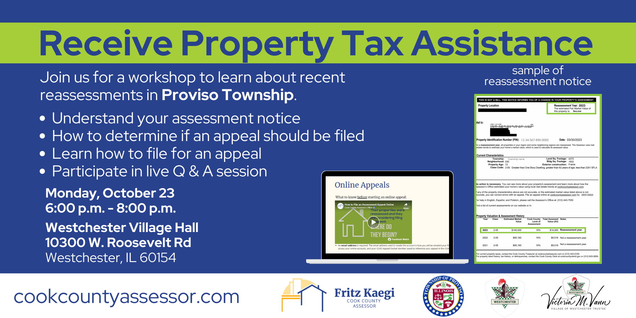Join us for a workshop to learn about recent reassessments in Proviso Township.