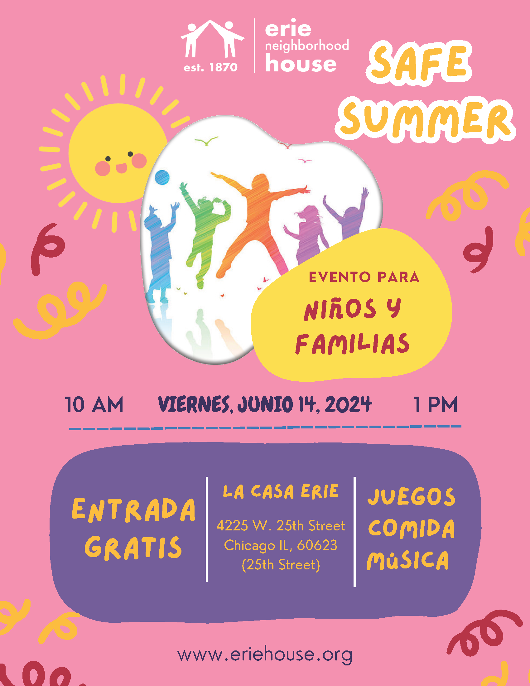 Pase por nuestra mesa en la Feria de Recursos de Verano Seguro celebrada por Erie Neighborhood House para obtener más información sobre lo que hace la Oficina del Asesor del Condado de Cook.