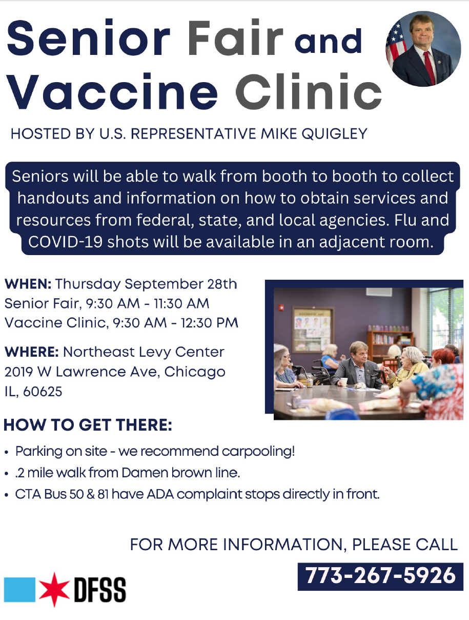 Stop by our table at the Senior Fair and Vaccine Clinic hosted by Us. Representative Mike Quigley and DFSS.