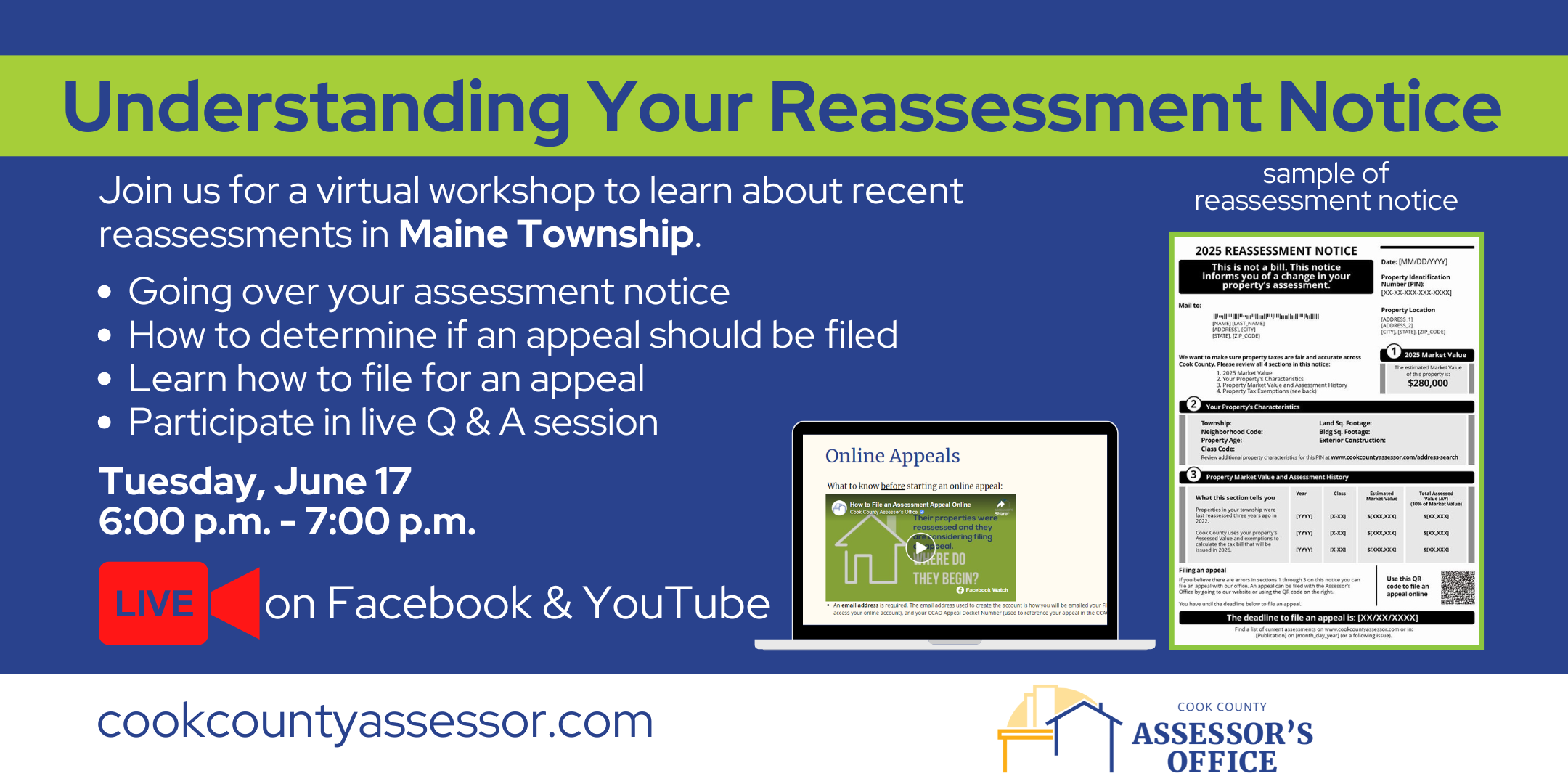 Join us for a virtual workshop to learn about recent reassessments in Maine Township.