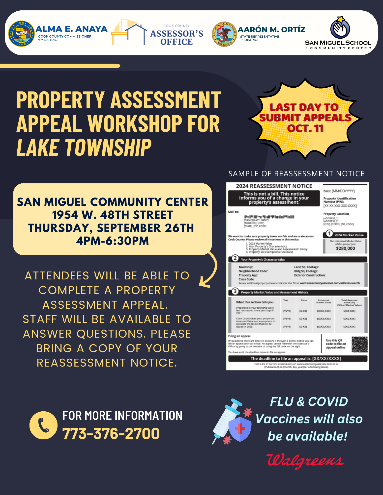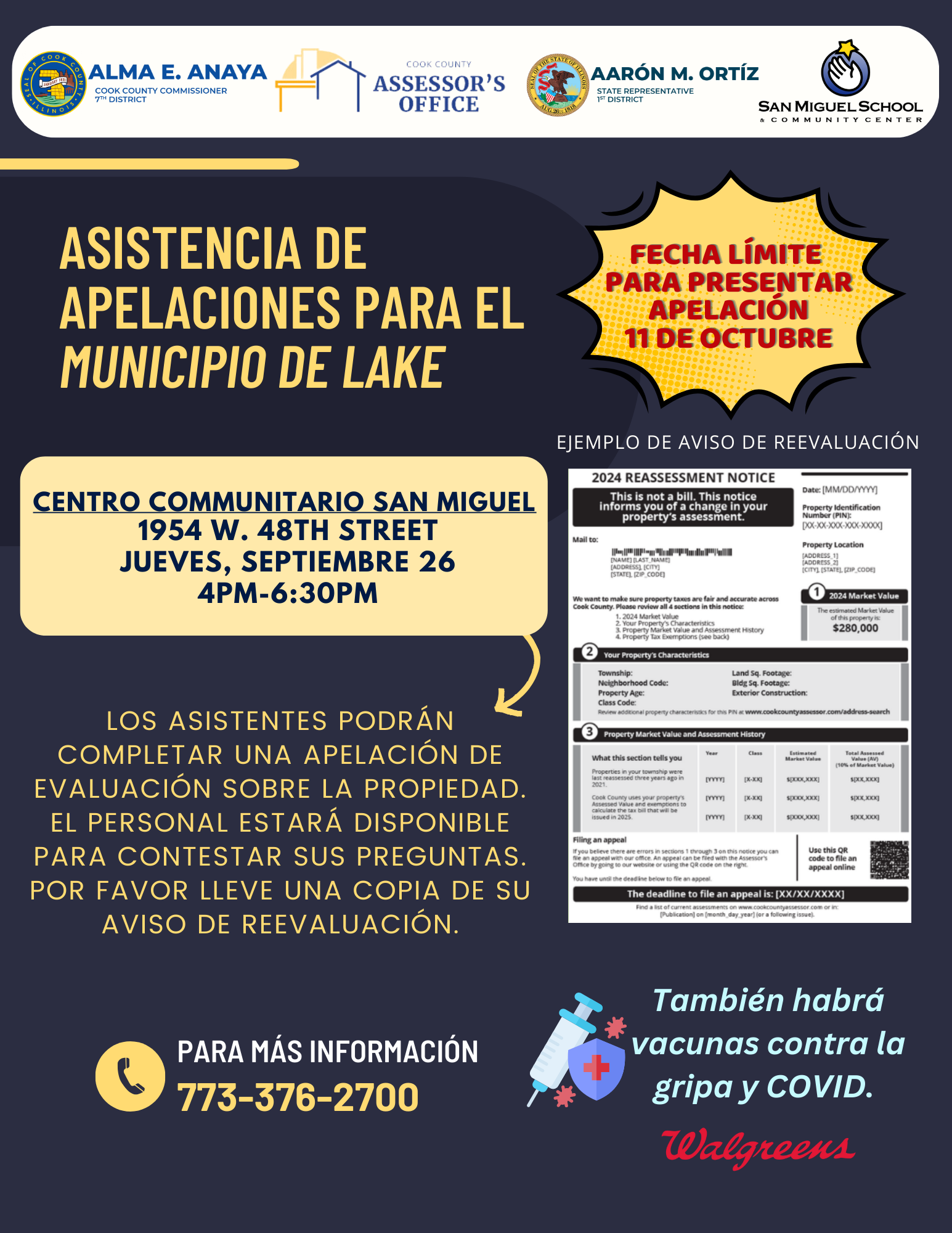 Reúnase personalmente con un representante de la Oficina del Asesor del Condado de Cook para aprender sobre reevaluaciones en el Municipio de Lake .