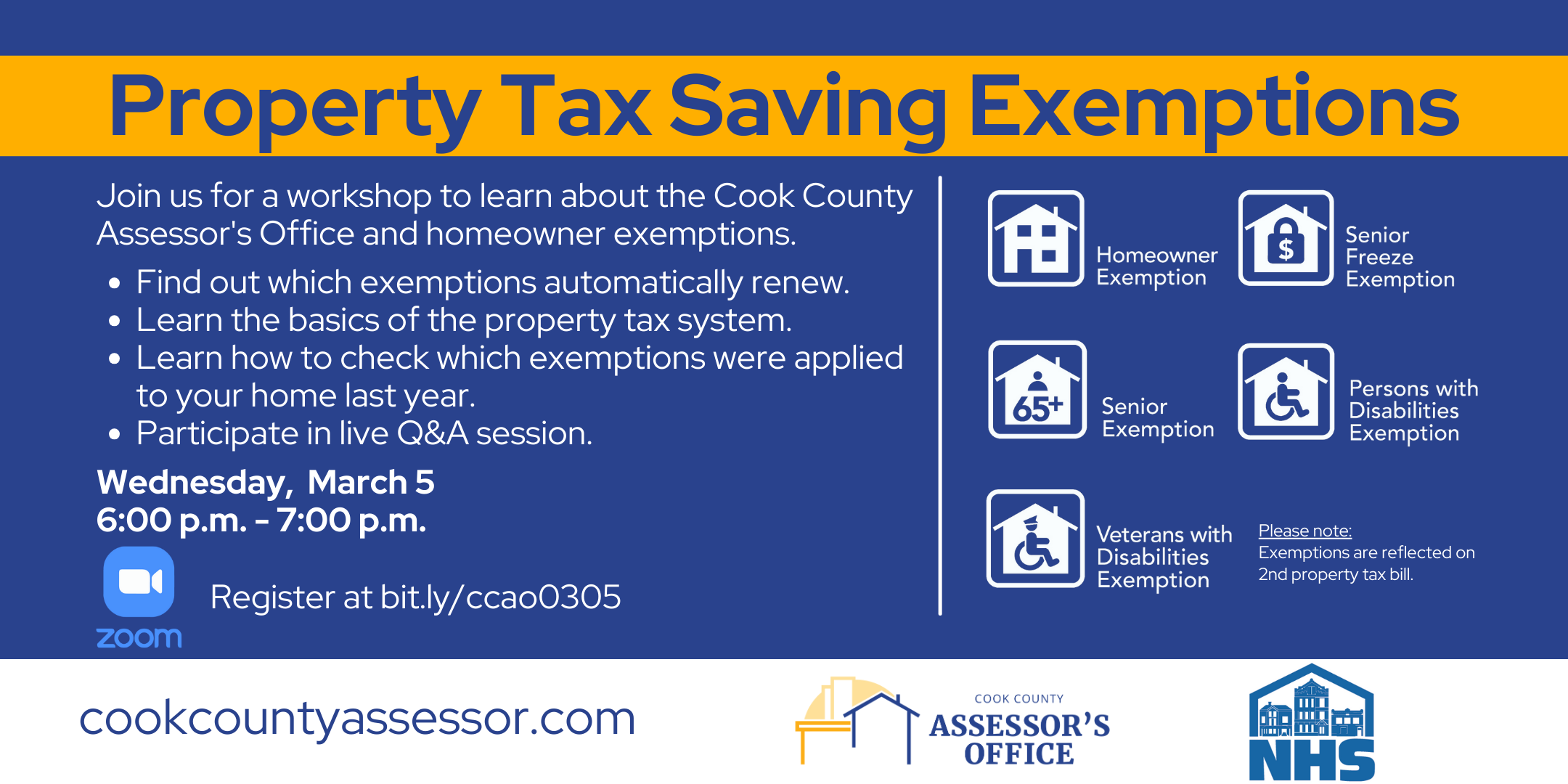 Join us for a workshop to learn about the Cook County Assessor's Office and homeowner exemptions.